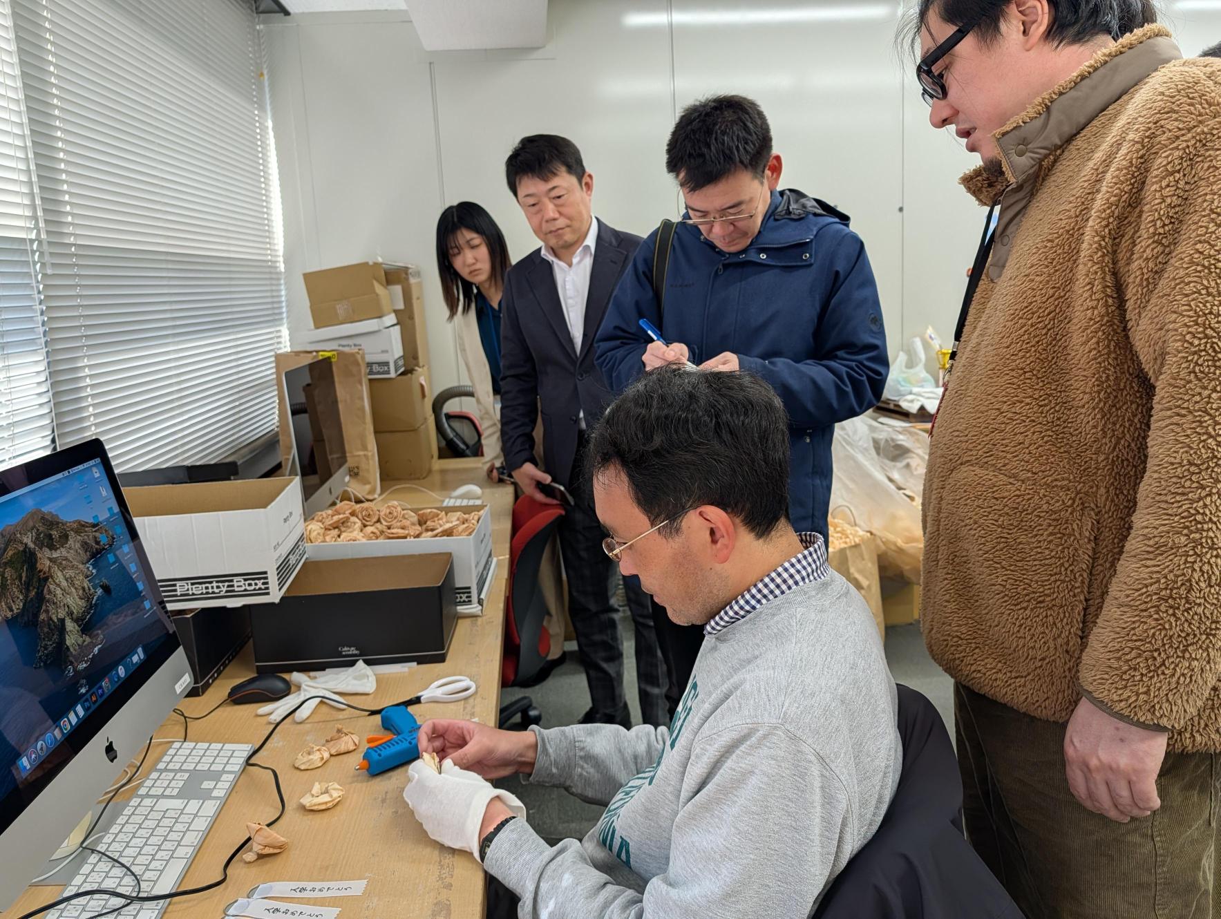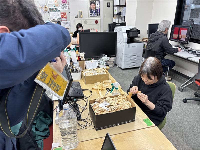 今年度は新たな試みとして、コサージュの素材に「みやこ杣木(※1)」の廃木材を活用しました。ヒノキを削る際に生まれるカンナ材を使用しており、環境への配慮や京都の伝統産業の振興、林業と福祉の連携といった観点にもつながる取り組みです。こうした点にご関心をいただき、今回の取材につながりました。