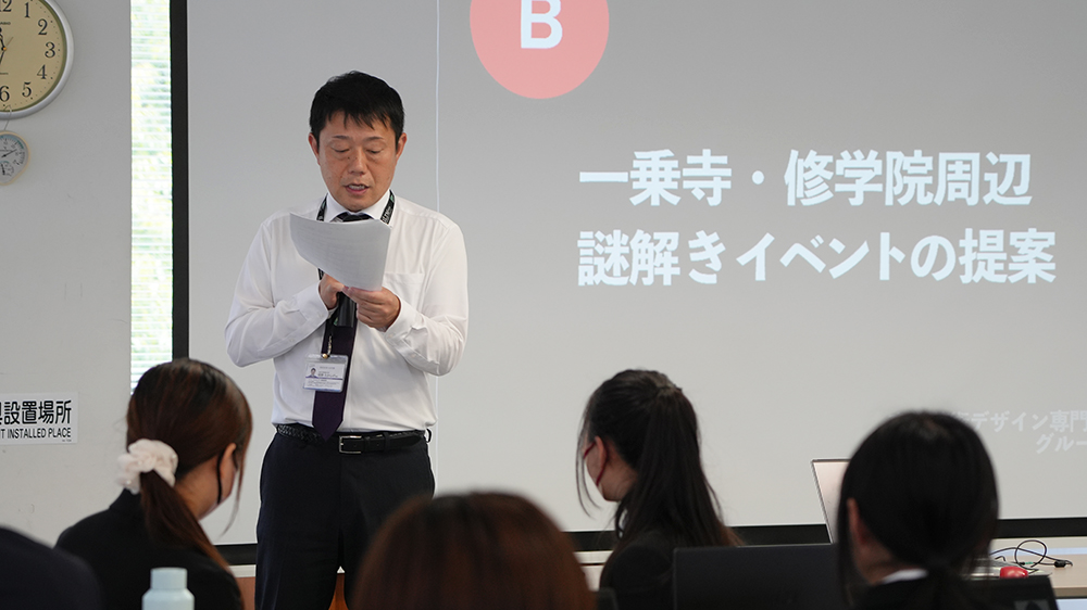 学生の皆さんからは、それぞれの企画についてプレゼンテーションがあり、当協会スタッフも評価員として参加。メインビジュアルやグラフィックデザイン、キャラクターデザインなど、さまざまな観点からフィードバックをさせていただきました。