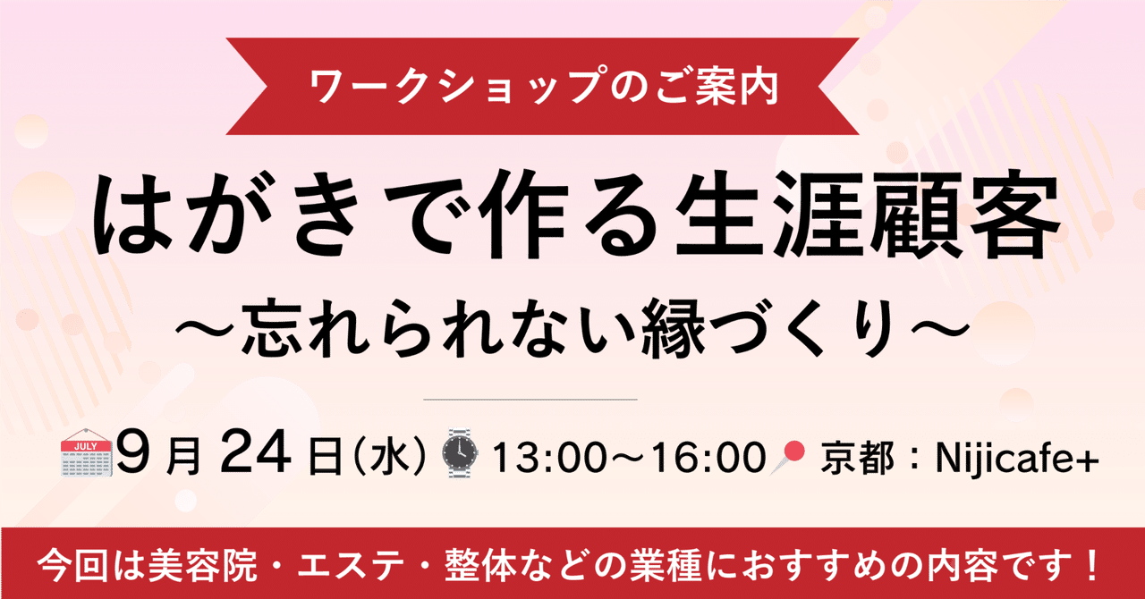 ※ 実際にハガキを書くので、顧客情報があればお持ちください。