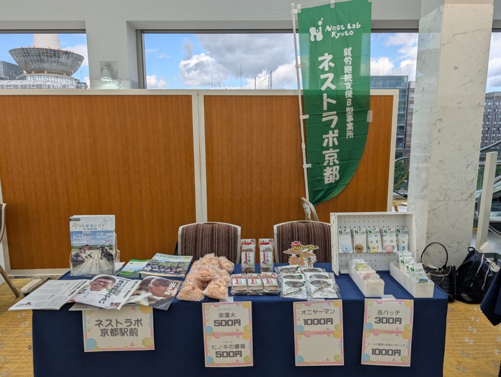 このイベントでは、京都府内の8つのB型事業所が参加し、それぞれの事業所で製造・製作した、パンやクッキー、コースターなどの商品を販売しました。