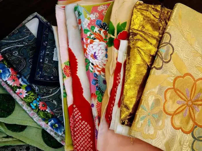 そこで今回は、ご自身のアトリエを無料開放し「断捨離市」を行っておられるオーナー様のご厚意により、京都の手描き友禅から可愛らしいプリント生地まで、たくさんの生地を提供していただきました。
